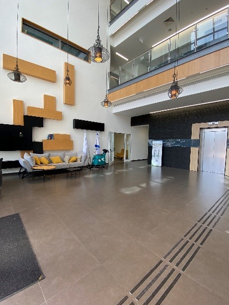 משרדים להשכרה באזור תעשייה צפוני בקיסריה, הבניין ממוקם מרחק הליכה מתחנת הרכבת, מתוחזק ומעוצב ברמה גבוהה.